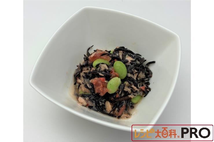 ひじきは水戻しし、水洗いしてホテルパンに並べ、スチコン スチームモード(100℃)で3~5分加熱し、冷ましておく。