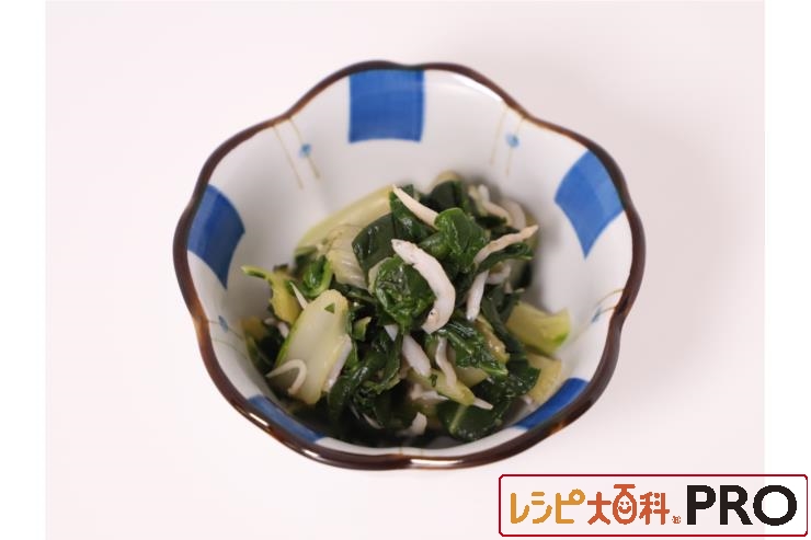 ※このレシピは、常食・やわらか食での掲載をしています。【常食】しらすと小松菜のわさび和え・【やわらか食】しらすとうまい菜のお茶風味和え