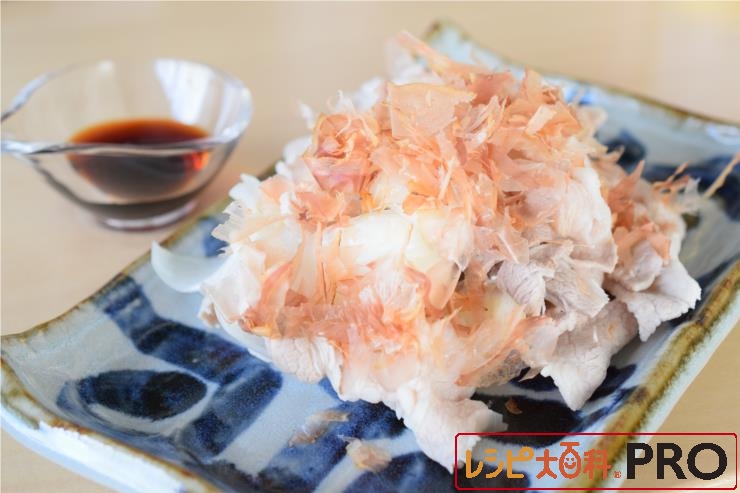 鍋に湯を沸かし、豚肉をゆで、冷ます。