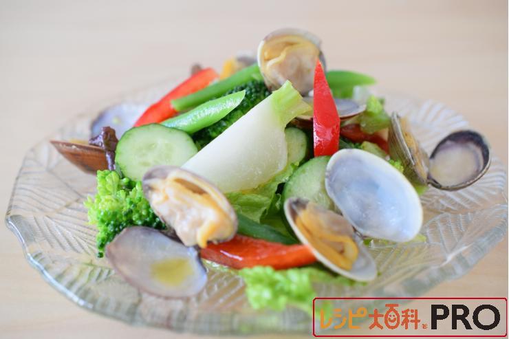 貝のエキスが入ったドレッシングを季節の野菜と共に