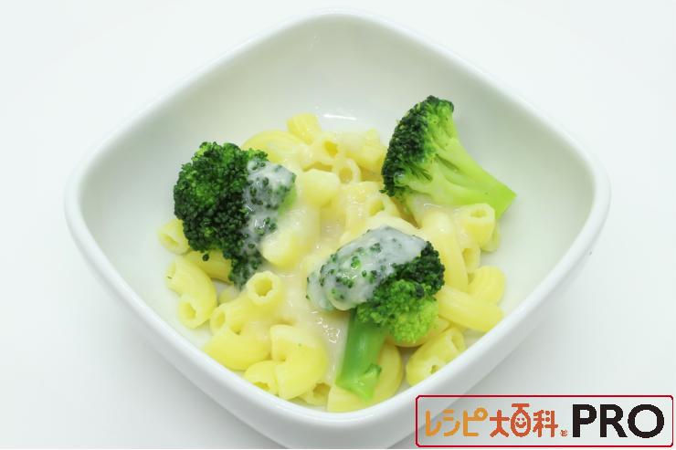マカロニはゆでる。冷凍ブロッコリーは、スチコン スチームモード(130℃)で約3分加熱する。