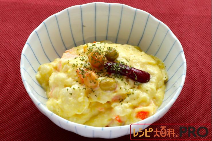ポテトサラダと粉体スープで、濃厚感ましましのサラダに。