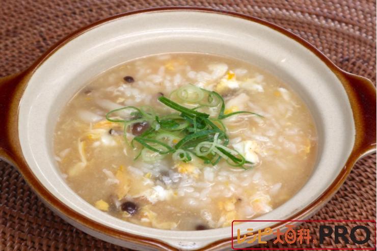 鍋にご飯、しめじ、水を入れて沸かし、微沸騰で約1分加熱する。