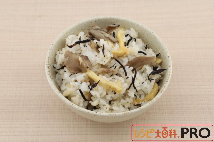 「ほんだし®」こんぶだしを使用することで、まろやかでコクのある混ぜご飯に仕上がります。安価な油揚げを入れることで、油のコクが加わりエネルギーアップにつながります。